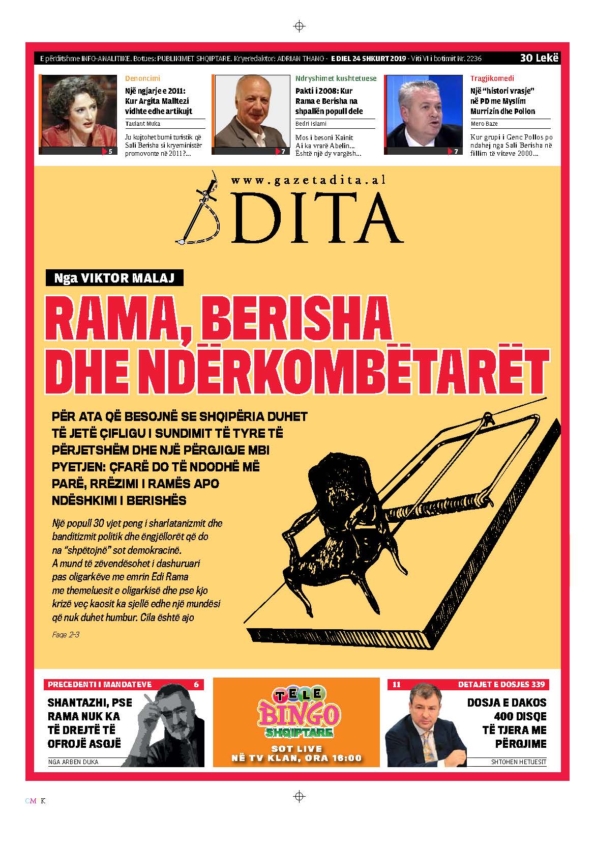 Edhe sikur gjithë sa pretendon opozita të ishin të vërteta, ata nuk janë assesi alternativa për të qeverisur vendin. Aq më pak mund të pranohet që me pretekste, sajesa dhe trillime të tentohet përmbysja e qeverisë dhe, siç thotë Deklarata e OSBE-së, përparimi i vendit “të përmbyset në dobi të një grushti dhunuesish”. Si mund të biesh dakord të pengohet dhe të vonohet integrimi evropian i Shqipërisë vetëm e vetëm për të zëvendësuar Edi Ramën me Lulzim Bashën, një mishërim i përsosur i hipokrizisë, mashtrimit, paaftësisë dhe mungesës së çdo parimi, një klonim artificial i berishizmit?