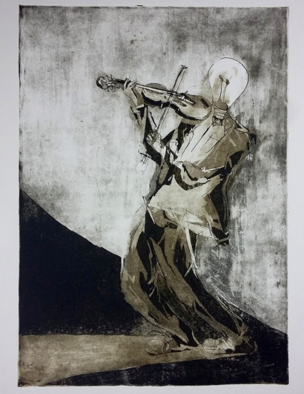 E treta, sytë e instrumentistëve, sikur reflektojnë dritë, nga ajo që nxjerrin prej publikut, që edhe kjo është portretuar shumë bukur, që dëshmon, edhe pse nuk shihet publiku, se ai është përballë tyre;