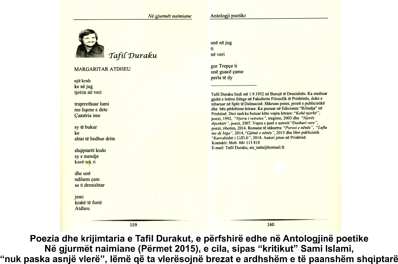 Kundër “reagimit” të Sami Islamit “Drenica heroike nuk e ka pasur kurrë zakon të shajë, përjashtim bën vetëm Tafil Duraku!”, publikuar tek www.albaniapress.com, më datë 24 qershor 2015