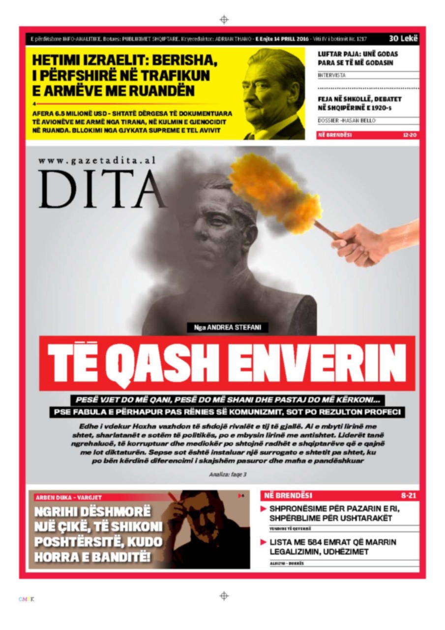 Pesë vjet do më qani, pesë të tjerë do më shani dhe pastaj do më kërkoni – qarkullonte që pas rënies së komunizmit një fabul lidhur me Enverin. Por që sot po rezulton një profeci. Edhe i vdekur Hoxha vazhdon të sfidojë rivalët e tij të gjallë. Jo se janë ndryshe nga ai. Por pikërisht se janë si, veç më të paaftë se ai. Enveri e mbyti lirinë me shtet. Sharlatanët e sotëm të politikës, liderët e lavdishëm po e mbysin lirinë me padrejtësi, korrupsion dhe antishtet. Dhe nuk ka më keq se antishteti. Ndërkaq, e keqja më e madhe është se liderët tanë ngrehalucë, të korruptuar dhe mediokër, pasi kanë krijuar këtë gjendje kritike për Atdheun, këmbëngulin të ofrohen si shpëtimtarë unikalë të tij!